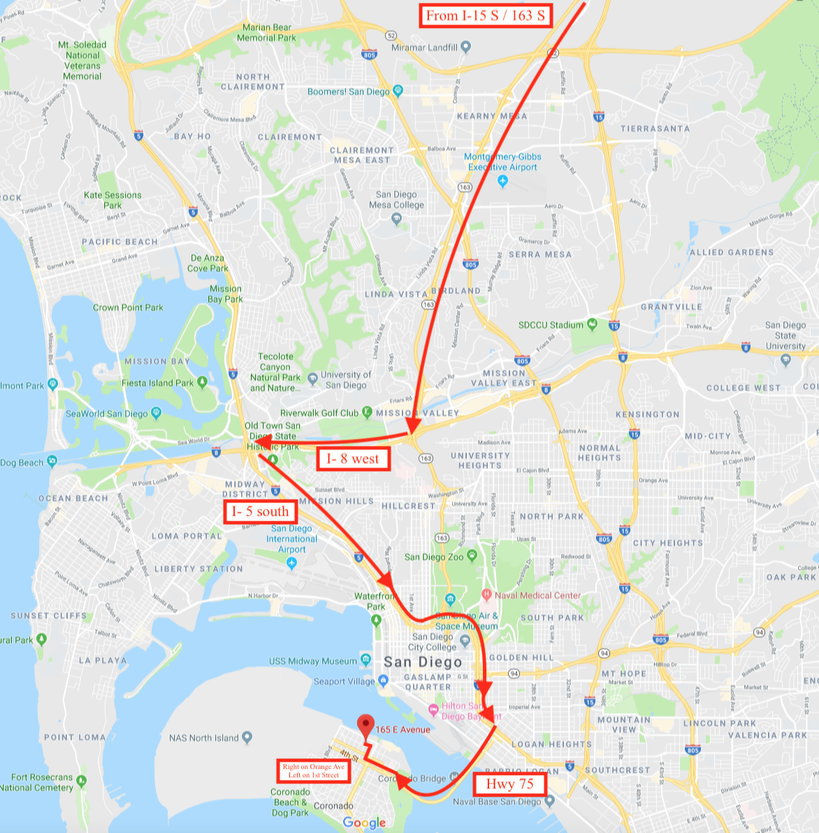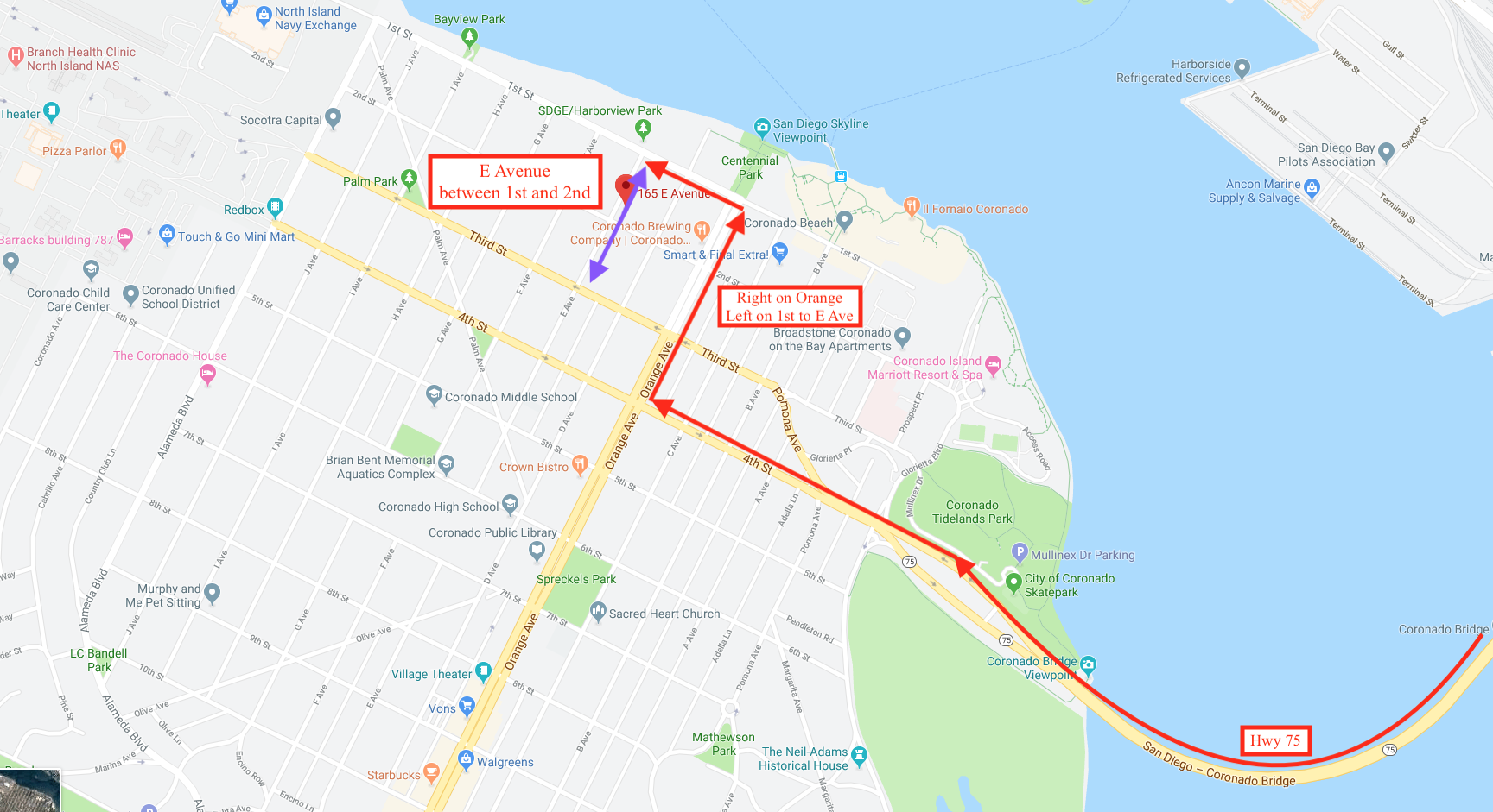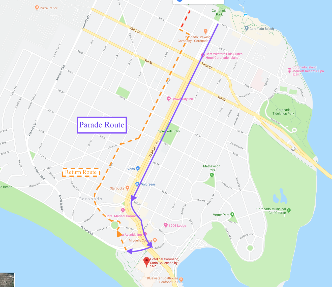 In Coronado stay on Hwy 75 to Orange Avenue